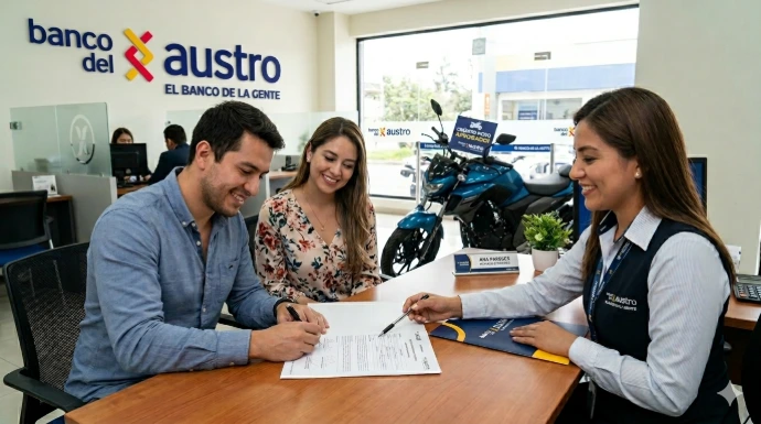 En EFLOSA, no solo contamos con motos; te ofrecemos el respaldo del Banco del Austro. Gracias a nuestra alianza estratégica, accedes a un crédito de consumo 100% seguro y transparente, gestionado directamente desde el sistema bancario.